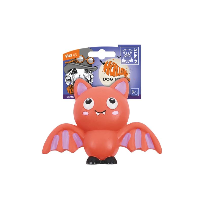 Juguete murciélago con sonido color naranja para perros. La nueva gama de juguetes de látex para perros con temática de Halloween de M-Pets son fabricados con látex resistente y sonido incorporado para horas de juego. Medidas: 16 x 6,4 x 12,5 cm.