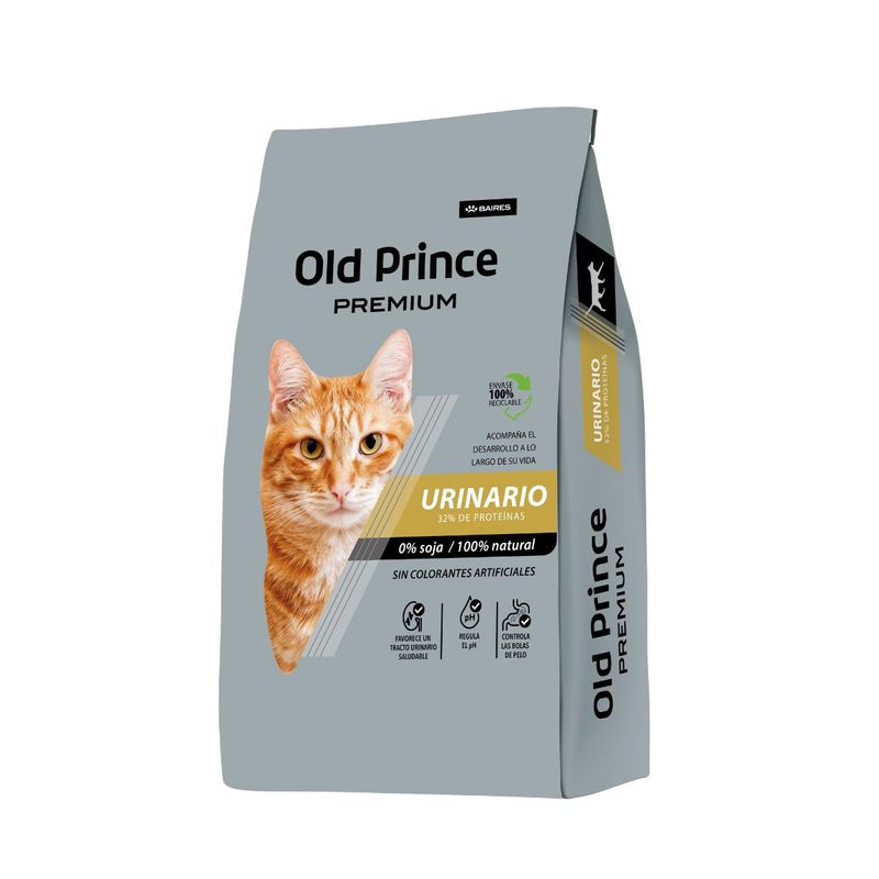 Old prince Premium Gato Urinario es un alimento balanceado para gatos adultos que favorece a un tracto urinario saludable. Alimento 100% natural con 0% de soja formulado para regular el pH y controlar las bolas de pelo.
