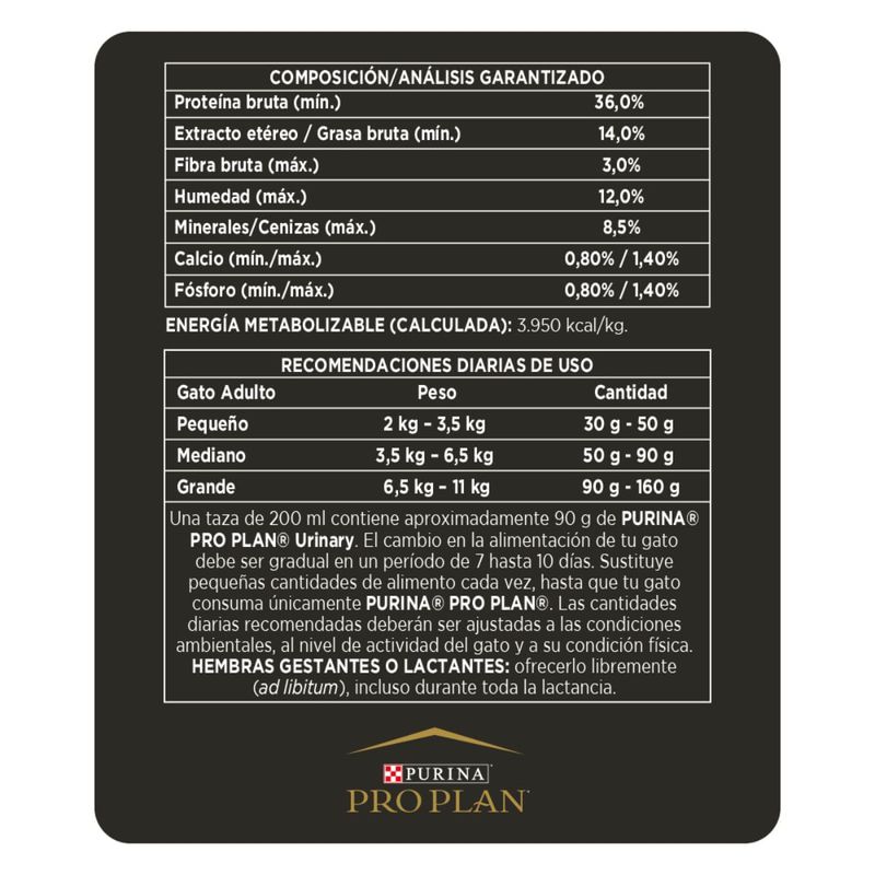 Purina Pro Plan Urinary Gato Adulto con tecnología Optitract es un alimento balanceado de calidad super premium para gatos adultos con tendencia a desarrollar trastornos urinarios. Su exclusiva tecnología fomenta el consumo de agua y ayuda a prevenir la formación de cristales de estruvita y de oxalato manteniendo y protegiendo la salud del tracto urinario inferior de los gatos adultos.